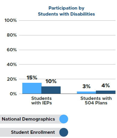 Students with Disabilities are those students with IEPs. The OSPI 2023-24 K–12 Computer Science Education Data Summary Report does not provide data on Students with 504 Plans.